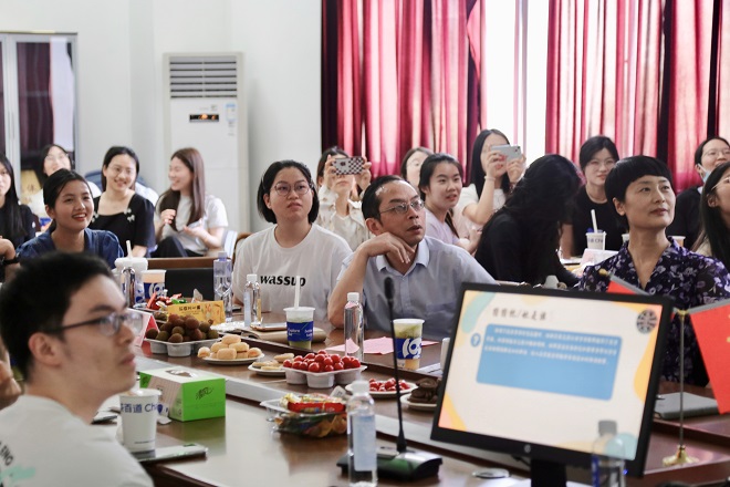 本次活动在享用茶歇的轻松愉悦的氛围中,围绕“学术态度与治学方法”、“心理健康的维护与提升”、“研究生生活的平衡之道”、“优秀影视与图书分享”四个主题展开师生交流。在讨论过程中,学生们不仅分享了学术研究与平时生活中的经验与感悟,还积极向老师求知求教,以期解决所遇到的问题与困惑。同时,为提升活动娱乐性,本次活动设置中场互动环节。主持人展示系列心理游戏,检测师生心理压力,调动现场气氛,同时进一步促进师生交流。游戏结束后,每组选派一位同学进行总结陈词,分享自己的感悟与体会。