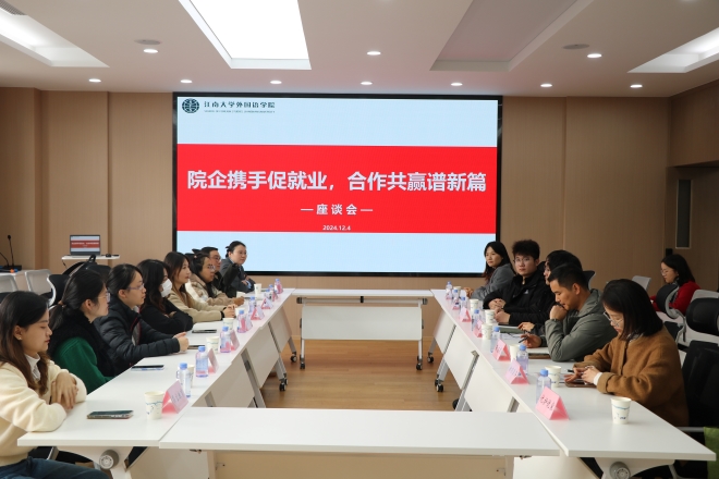 在A349会议室开展院企合作交流座谈会。江苏国泰华盛实业有限公司、弘元绿色能源股份有限公司、无锡金丽洁国际贸易有限公司等十余家企业来访交流,动漫屋
