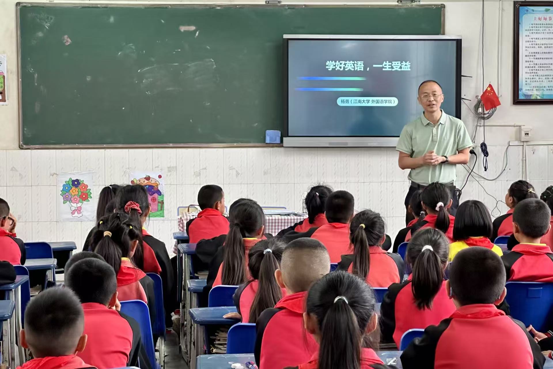 副院长杨勇、院长助理李文走进云南保山瓦渡乡中心学校和砚山思源实验学校,为近200名师生开展“英语:连接世界的桥梁”主题授课。杨勇老师以趣味游戏激发学习兴趣,结合“丝绸之路”与中国文化词汇,引导学生理解语言的文化传播使命;李文老师聚焦英语学习技巧,传授记忆方法并强调积累的重要性,他激励大家:“要保持对知识的求知欲,勇敢面对学习中的每一个挑战,才能在语言领域找到自己的独特价值。”