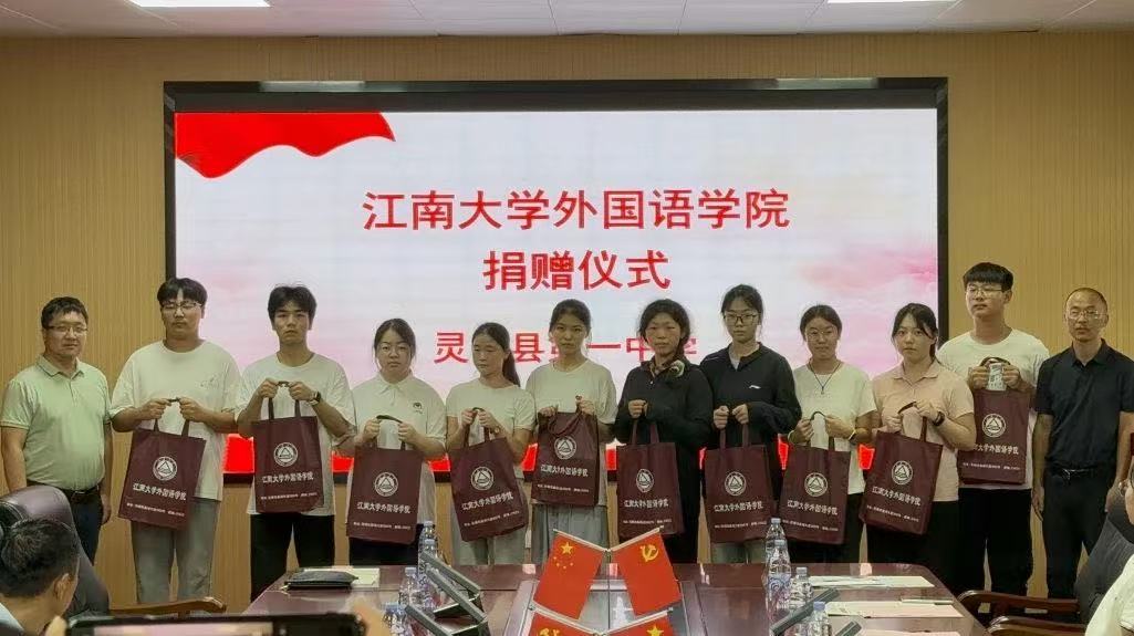 同日,师生们还前往灵璧一中进行交流学习,灵璧一中党委副书记刘亮,党委委员、纪委书记朱娄等参加活动。在座谈中,刘亮深入介绍了学校教学成果和党建情况,方文开介绍了学院在外语教育、课程建设、人才培养方面的成果与制度优势,季王飞则围绕“党政一体”党建模式分享经验,表达与灵璧一中在教师培训、学生交流、教学研究等方面深度合作的意愿。座谈后的捐赠仪式中,学院为该校优秀学子代表捐赠了一批精选书籍与文具,旨在以实际行动践行高校对基础教育的助力,也为两校后续深化教育合作、共育外语人才奠定温暖基础。随后,动漫屋