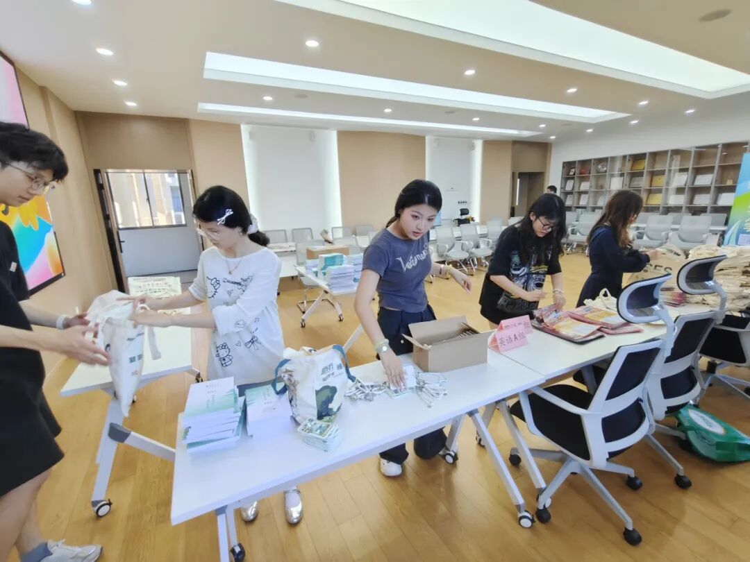 大家庭,正式开启四年大学时光。为营造温暖有序的入学氛围,在迎新的筹备现场,志愿者们紧锣密鼓地筹备2025级新生迎新工作。志愿者化身“魔法师”,把对新生的期待与关怀,尽数装进印有美好祝福的帆布袋中。有的同学在仔细检查袋内是否配齐校园手册与定制文创;有的俯身整理堆叠的资料,将其按类别谨慎规整。