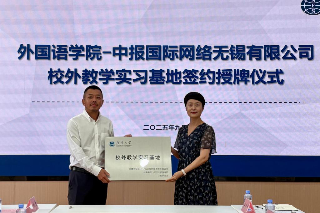 授予中报国际网络无锡公司“大学生就业最佳战略合作伙伴”称号,由季王飞现场授牌。顾琦一与王政华共同签署了校外教学实习基地协议,李荣华向企方授予“校外教学实习基地”牌匾。双方还就课程共建、党建联动、职业启蒙等未来合作方向进行了探讨。