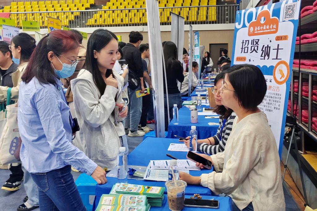 在推动毕业生就业的同时,学院也将职业生涯规划教育前移,组织大一新生参与“生涯嘉年华”活动,并引导他们进入招聘会现场。通过定位外语岗位、采访HR了解核心技能及探索新兴行业等实践任务,同学们提前感知就业氛围,明晰学习方向,为未来的职业发展奠定基础。